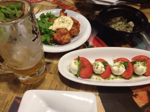 会社同期と蒲田にて飲み会。って言っても2人だけどwhttp://www.hotpepper.jp/strJ000136456/カプレーゼ、チキン南蛮、たこわさ。1年振りくらいに会ったのかな?会社の入社時研修の時に同じグループだった流れで、ちょこちょこ集まってる。やっぱり会社同期だ…