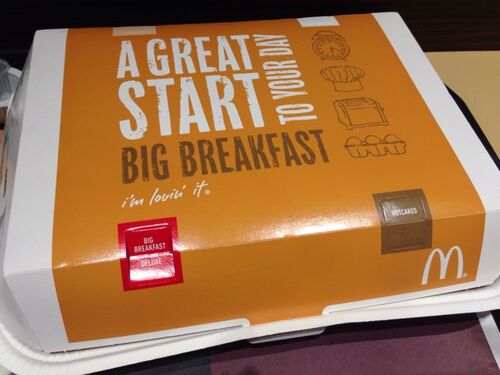 上大岡で朝から用事があるってことで、駅近くのマクドナルドへ行きました。注文したのはこれ!ビッグブレックファスト デラックスのセット。開けるとこんな感じ。パンケーキ3枚、スクランブルエッグ、イングリッシュマフィン、ソーセージパティ、ハッシュポ…