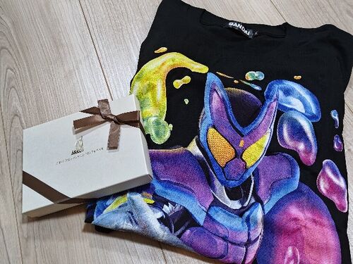誕生日に妻からプレゼントを頂きました。 チョコレートと仮面ライダーカヴのTシャツ。 暖かくなったら着ようと思います。どうもありがとう! 仮面ライダーカヴ、なかなか話が面白い仮面ライダーで楽しみに見てます。 あと、銀座コージーコーナーでプーさんの…