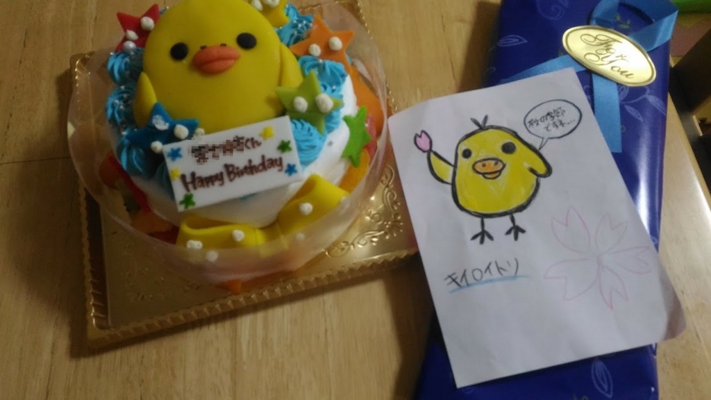 2017-03-20 誕生日を祝ってもらいました。 イベント キイロイトリ 長女 家族 35歳の誕生日を祝ってもらいました。 キイロイトリのバースデーケーキに、娘からカードとプレゼント。 オフィシャルケーキにしてはカラフルだなーと思ってたら、なんとオーダーメイドケーキとのこと。自宅のぬいぐるみの写真を送って作ってもらったらしいです。 ケーキは市販のやつ買うねーと事前に聞いていたので凄くびっくりしました☆ どうもありがとう! とうとうアラフォーへ・・・。 今は忙しくて体調を崩しがちだけど、ぼちぼちやっていきます。まずは4月の試験かな。