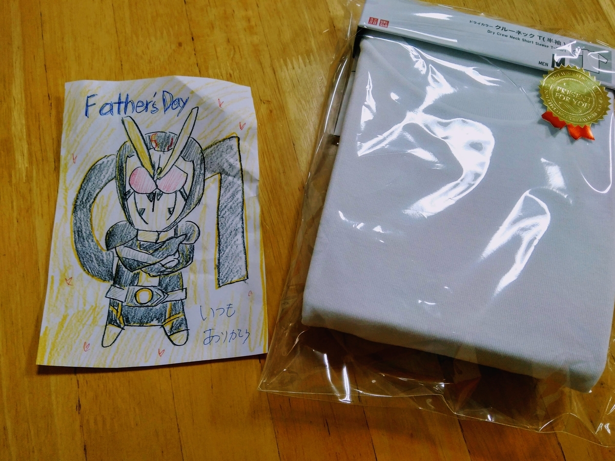 2020-06-21 父の日に仮面ライダーイラスト 家族 徒然 長女 仮面ライダー 父の日ということで長女から仮面ライダーゼロワンのイラストと、アンダーシャツをいただきました。 長女は、自分が嵌っているものをプレゼントと一緒に描いてくれます。どうもありがとう! 今回は仮面ライダーゼロワン・ライジングホッパー。 ちゃんと決めポーズの「人差し指」もしっかり描いてます。絵心があって素敵だなぁ。 仮面ライダーゼロワン、とうとう本日再開されましたね。滅亡迅雷の振り返りもしつつということだったので35.5話。半分総集編でありつつもきちんと話が進みました。 撮影も密を避けて行うという事で大変だと思いますが、最後まで走り切ってほしいですね。