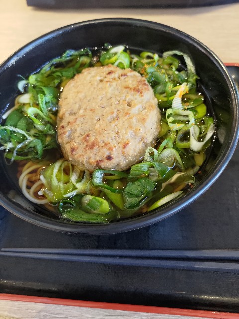 箱根そばにて鶏つくねハンバーグの九条葱そばを食べました。